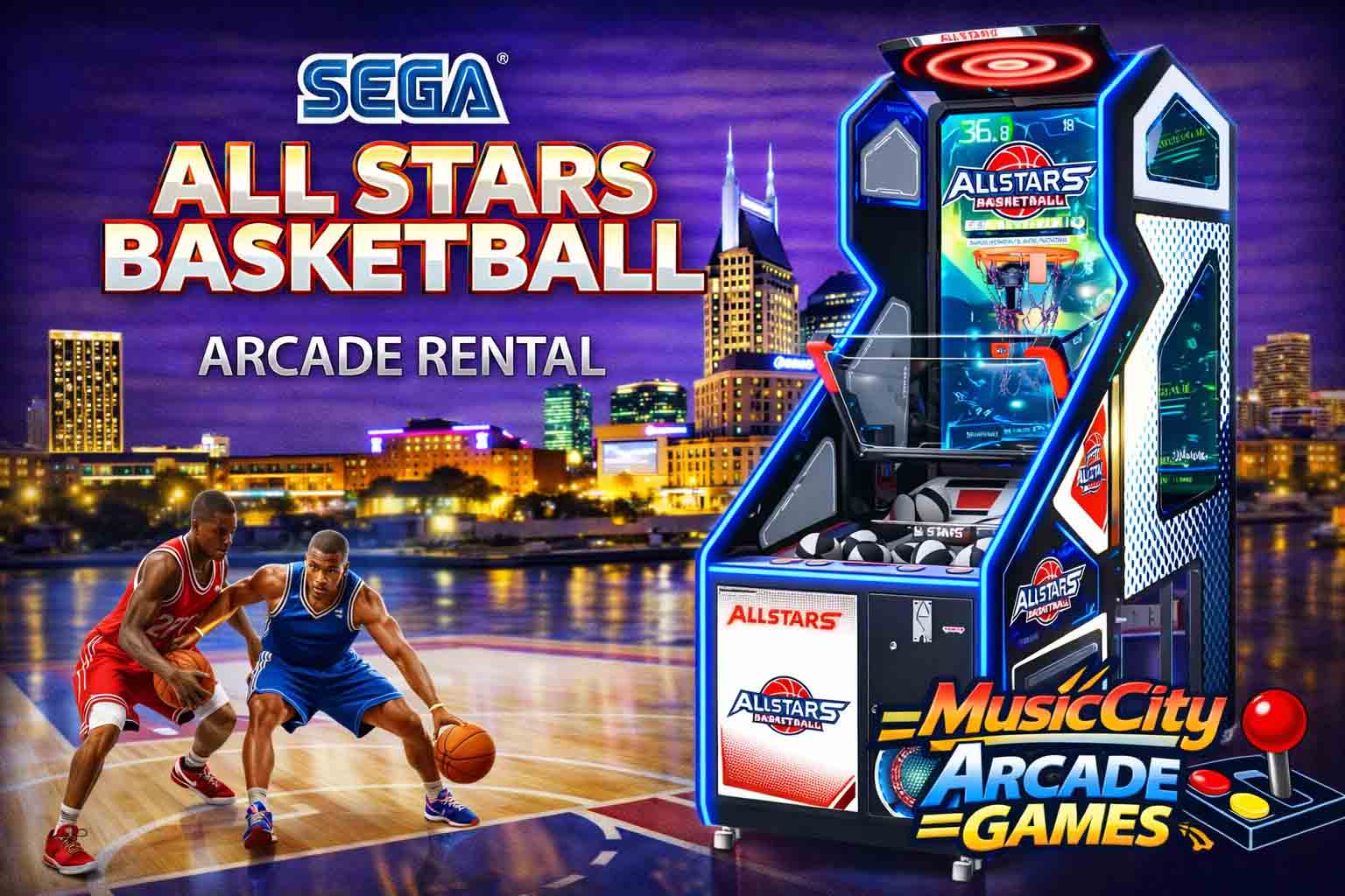 All Star Basketball arcade game rental Nashville from Music City Mini Golf offers rapid-fire scoring competition, competitive gameplay, and exciting sports arcade entertainment for corporate events and parties.