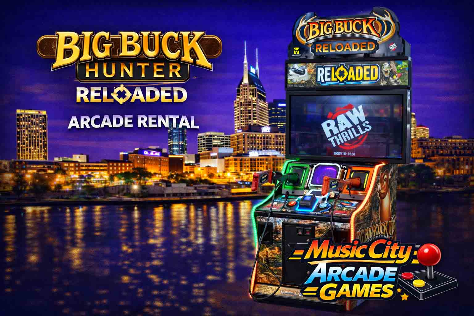 Buck Hunter Reloaded arcade game rental Nashville from Music City Mini Golf delivers immersive hunting action, competitive scoring, and high-energy gameplay perfect for corporate events, parties, and interactive fan experiences.