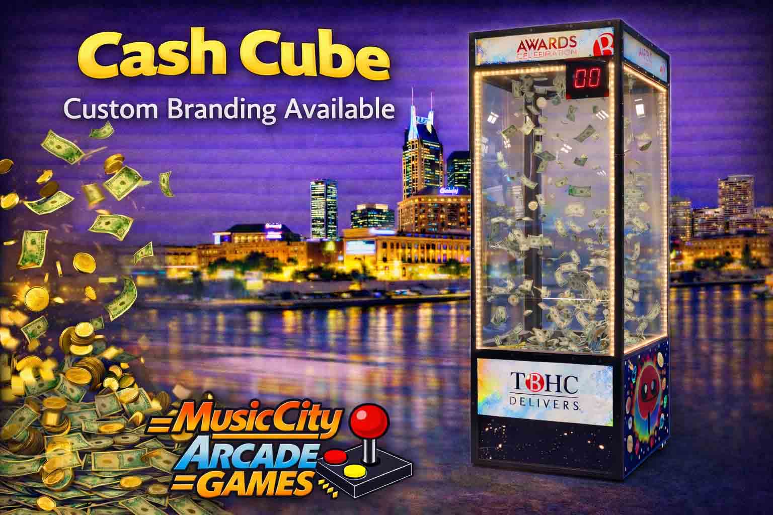 Cash Cube arcade game rental Nashville from Music City Mini Golf delivers high-energy prize grabbing excitement, fast-paced gameplay, and interactive entertainment perfect for corporate events, promotions, and brand activations.