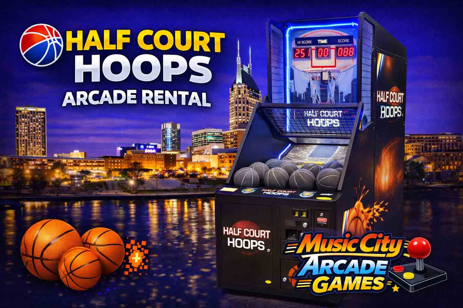 Basketball arcade game rental Nashville from Music City Mini Golf delivers fast-paced shooting challenges for events, driving crowd energy, friendly competition, and interactive sports entertainment guests love.