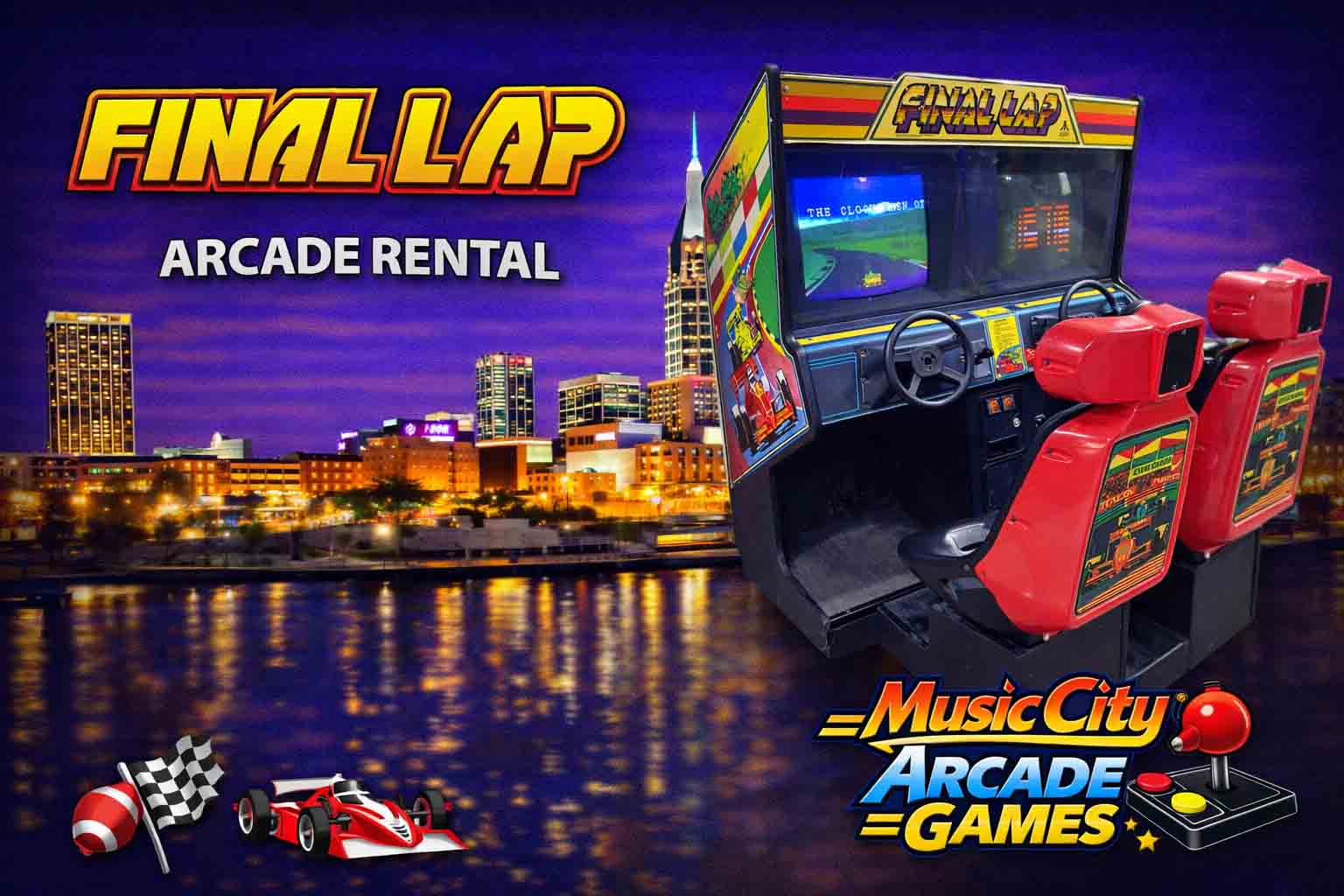 Final Lap arcade game rental Nashville from Music City Mini Golf offers classic sit-down racing action, competitive gameplay, and nostalgic arcade thrills perfect for corporate events and racing-themed parties.