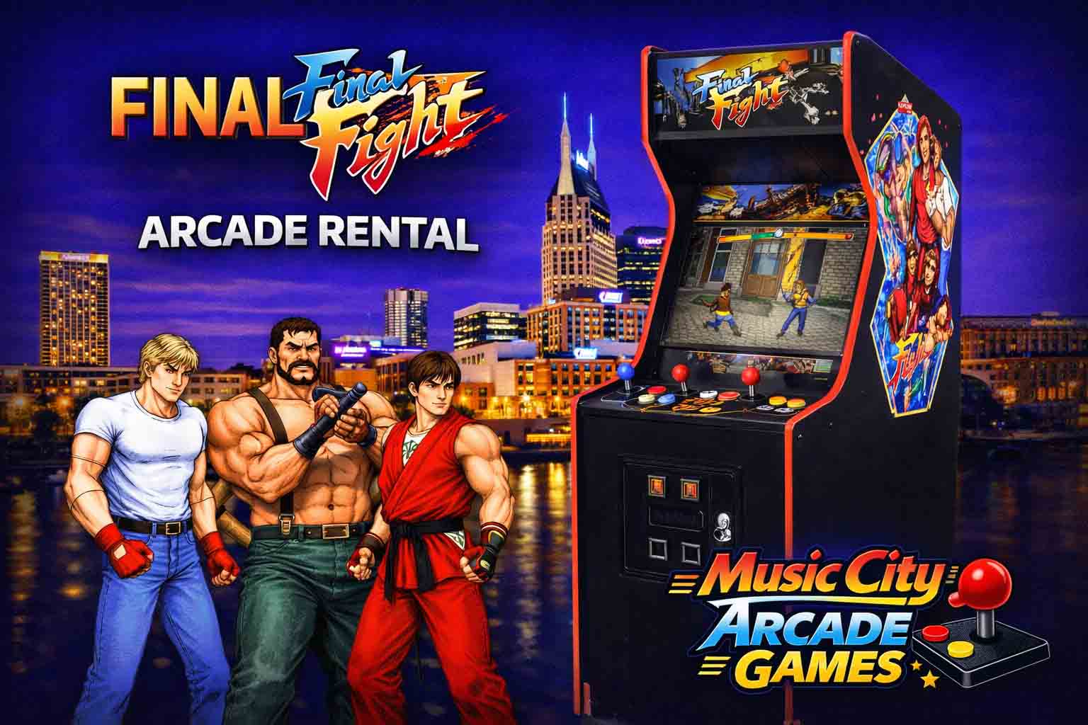 Final Fight arcade game rental Nashville from Music City Mini Golf delivers cooperative beat-em-up action, bold graphics, and high-energy gameplay ideal for corporate events, gaming parties, and fan-focused activations.