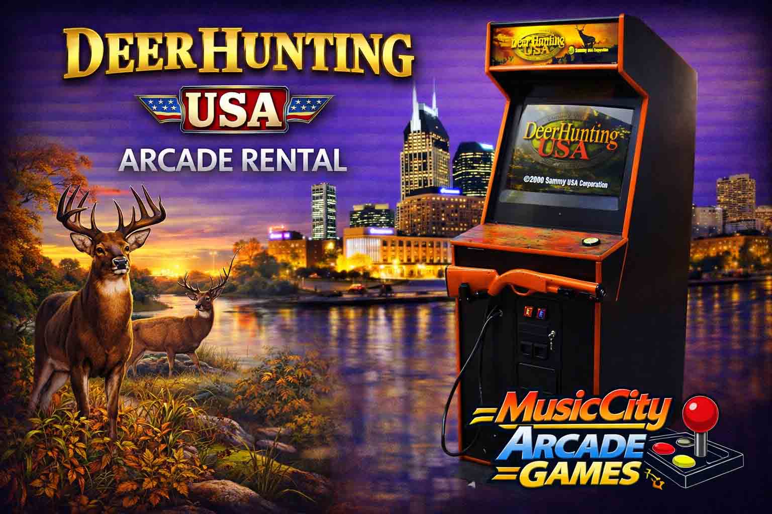 Deer Hunting USA arcade game rental Nashville from Music City Mini Golf offers realistic shooting gameplay, competitive challenges, and engaging sports entertainment ideal for corporate events, parties, and themed activations.