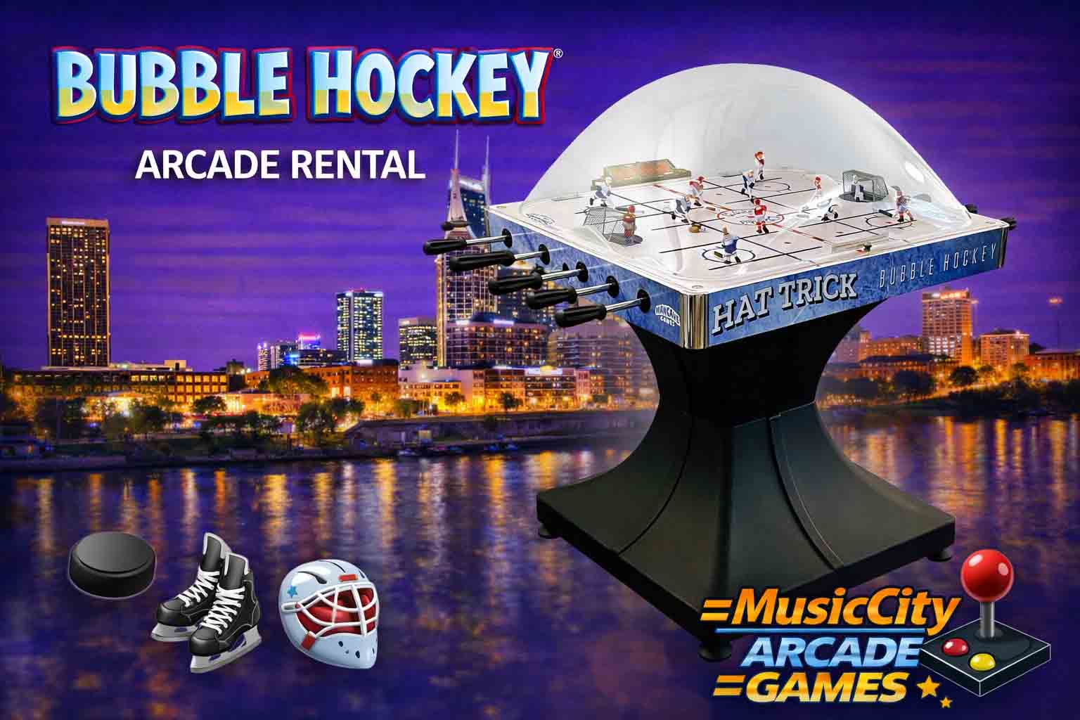 Bubble hockey arcade game rental Nashville from Music City Mini Golf delivers tabletop hockey competition with nostalgic appeal, competitive gameplay, and interactive entertainment for corporate events and fan activations.