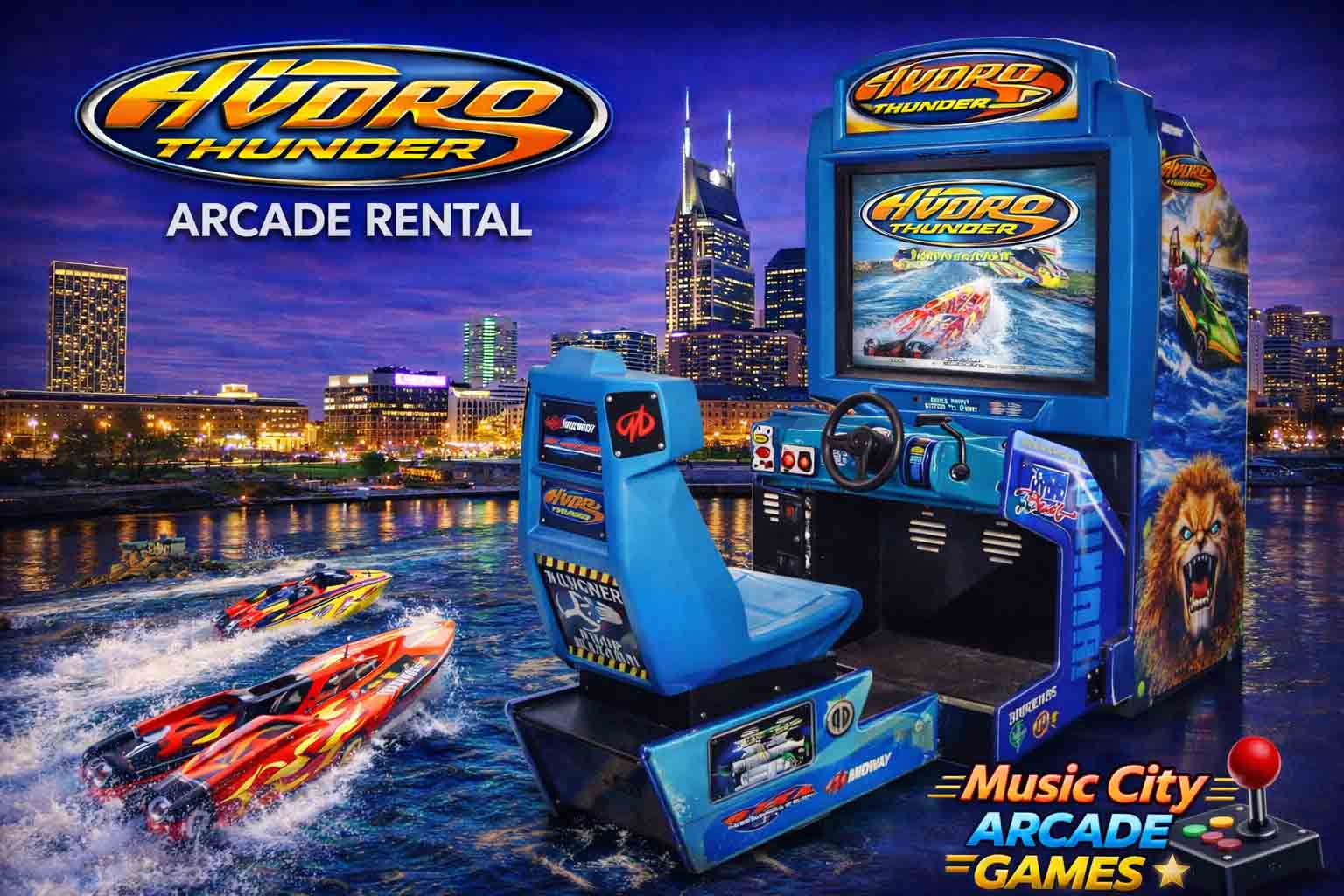 Hydro Thunder arcade game rental Nashville from Music City Mini Golf delivers high-speed boat racing excitement, competitive gameplay, and immersive arcade action ideal for corporate events and energetic fan activations.