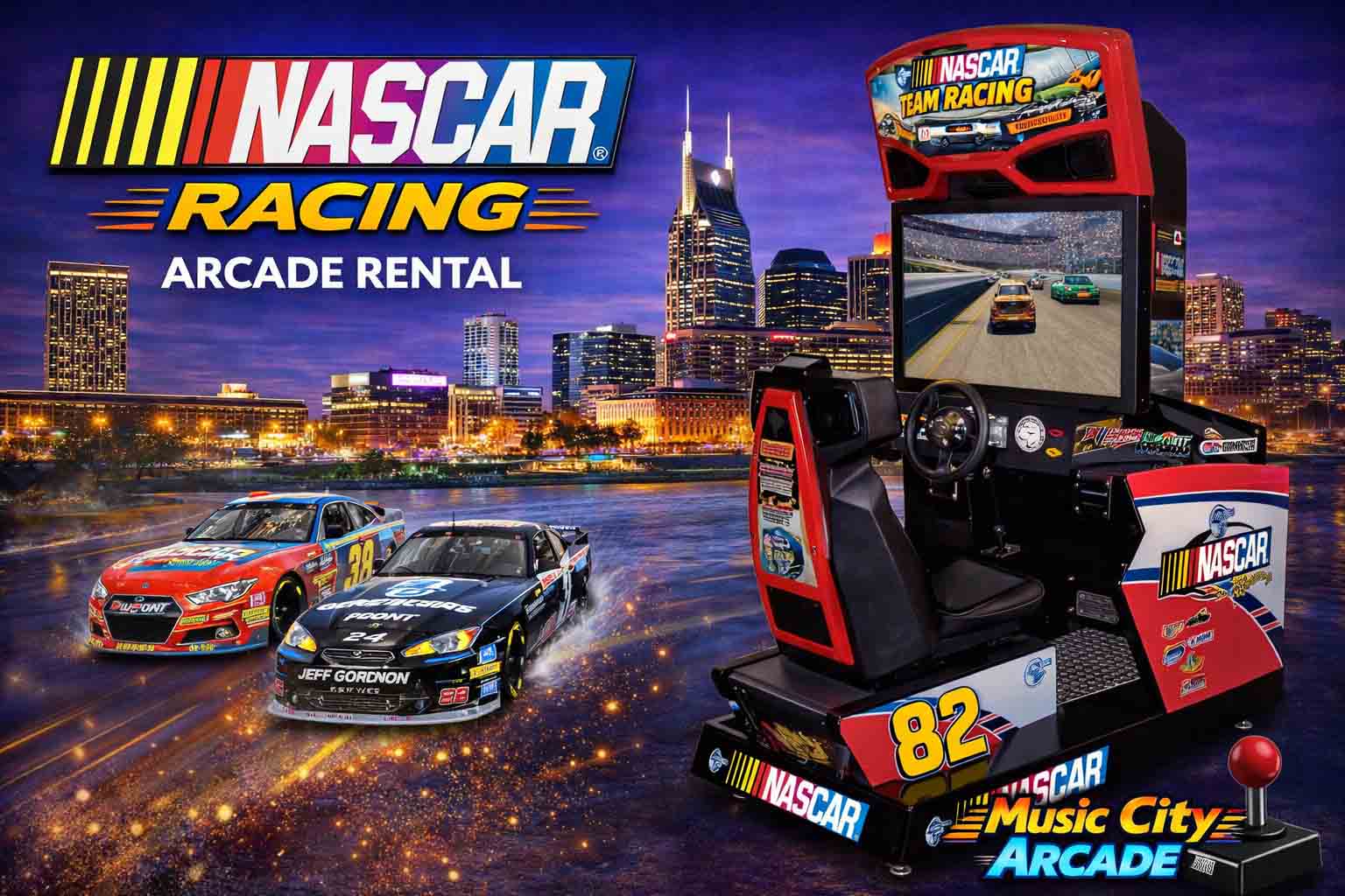 NASCAR Racing arcade game rental Nashville from Music City Mini Golf delivers high-speed racing competition, realistic controls, and adrenaline-packed gameplay ideal for corporate events and interactive entertainment experiences.