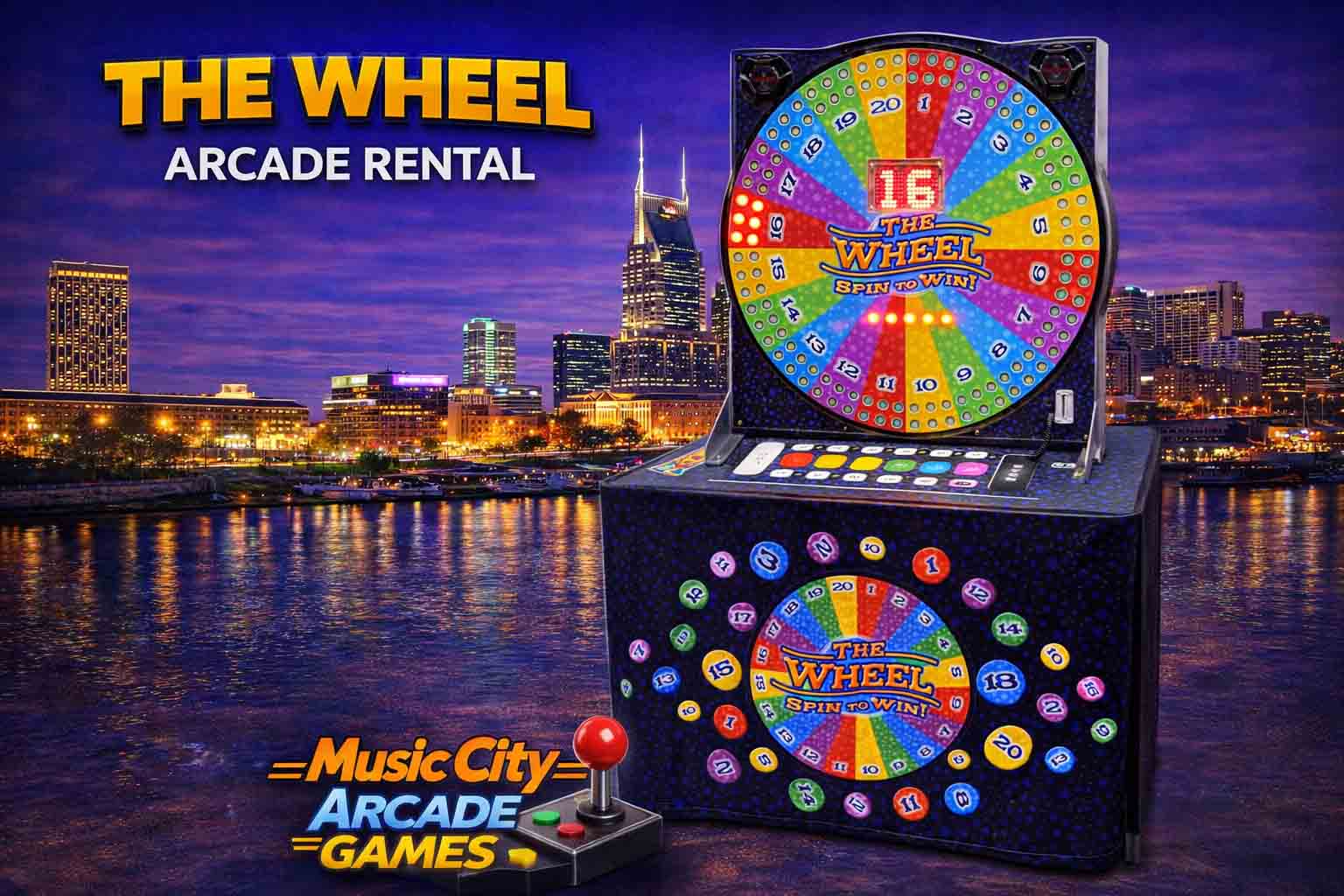The Wheel arcade game rental Nashville from Music City Mini Golf brings exciting spin-to-win gameplay, crowd participation, and high-visibility entertainment perfect for corporate events and promotional activations.