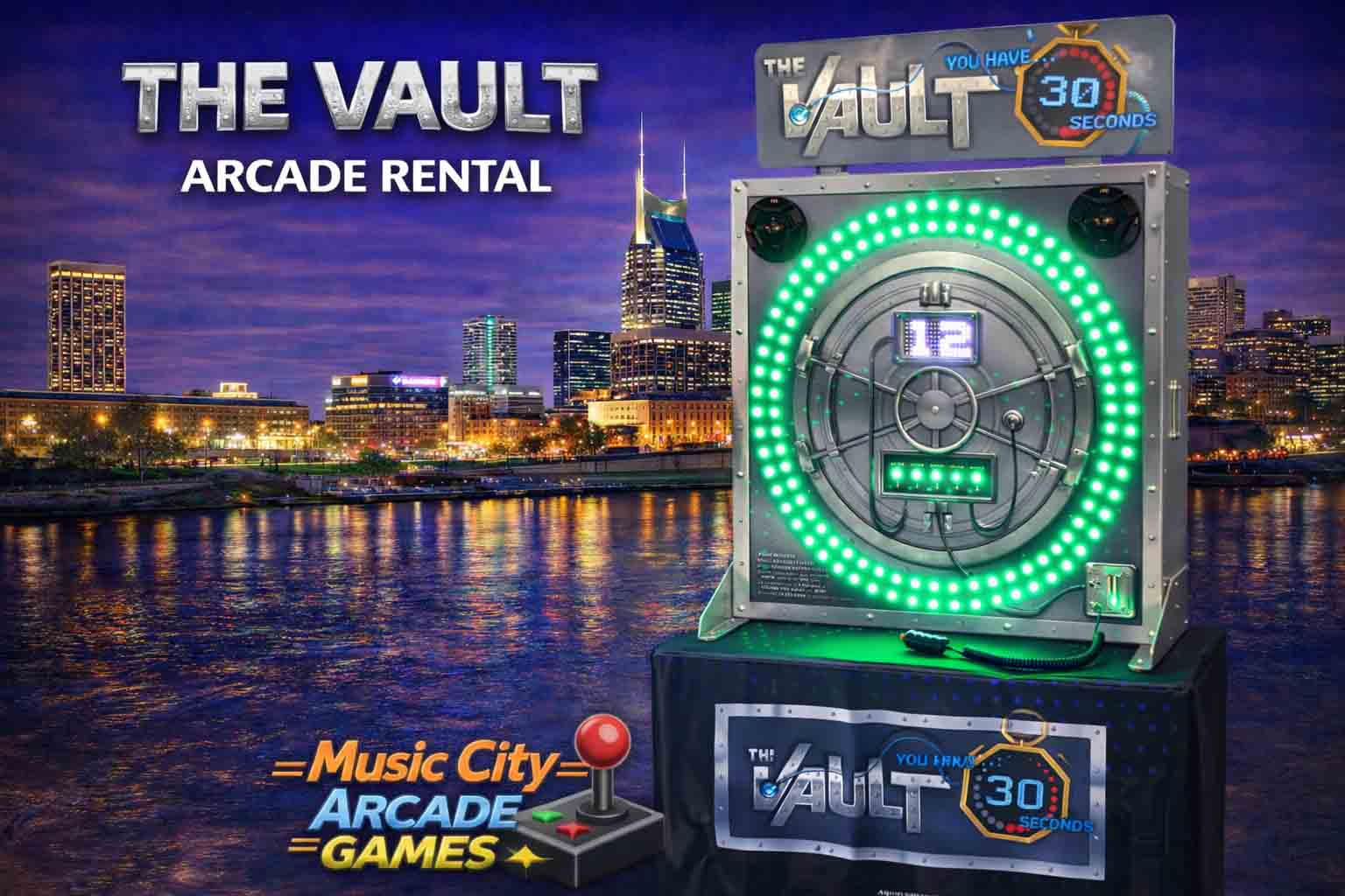 The Vault arcade game rental Nashville from Music City Mini Golf features timed prize challenges, exciting gameplay, and interactive competition ideal for corporate events, promotions, and experiential marketing activations.