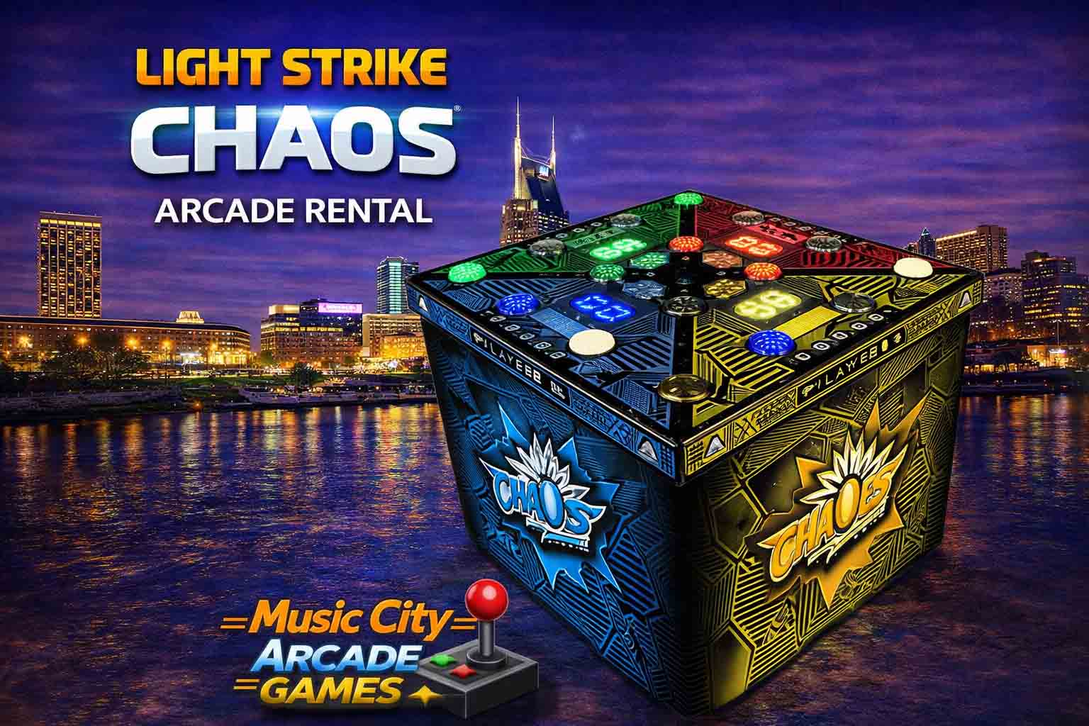 Light Strike Chaos arcade game rental Nashville from Music City Mini Golf delivers fast-reaction light-up competition, team gameplay, and immersive entertainment perfect for corporate events and high-energy activations.