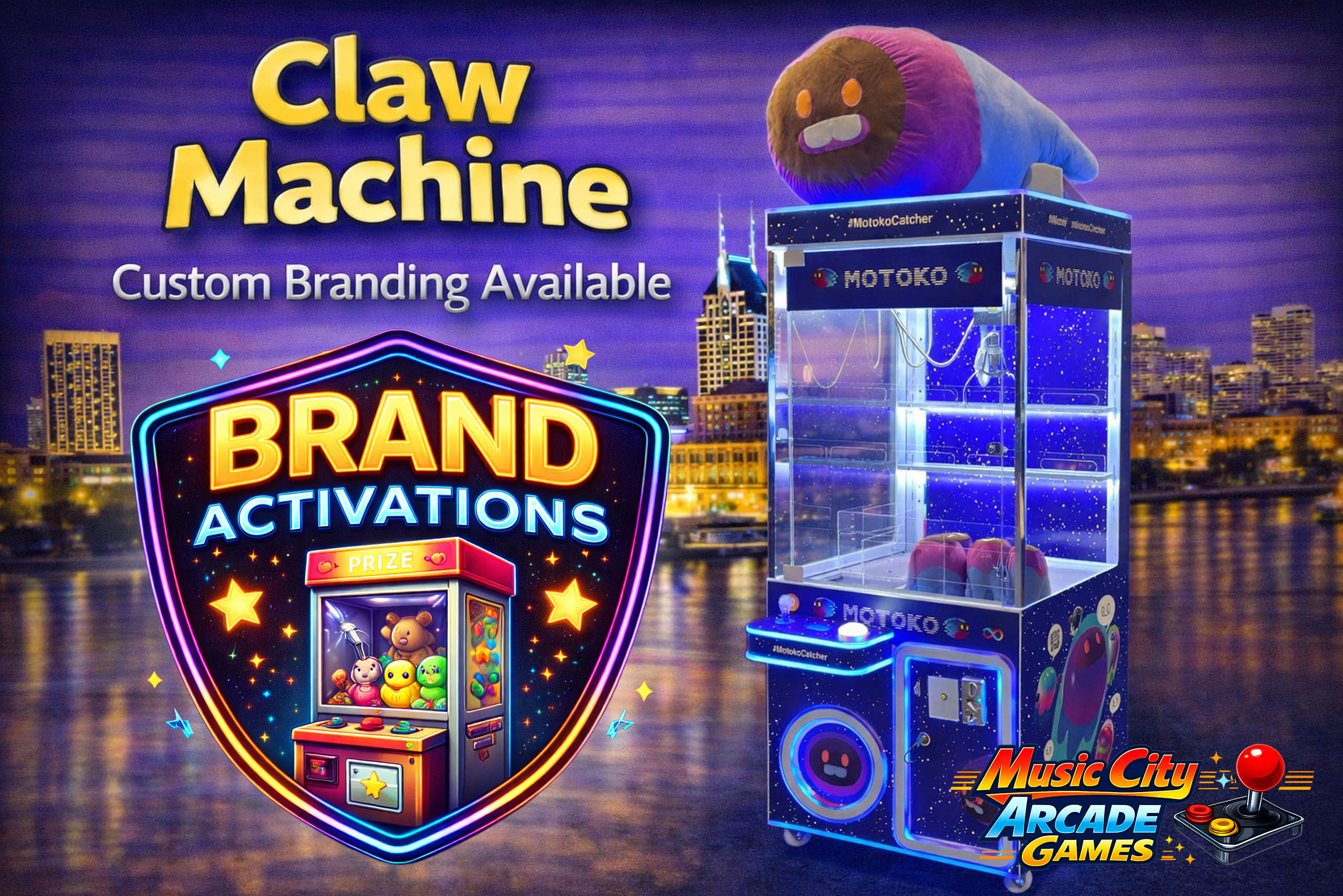 Claw machine arcade game rental Nashville from Music City Mini Golf offers classic prize-winning fun, crowd engagement, and nonstop interaction ideal for corporate events, parties, and promotional activations.