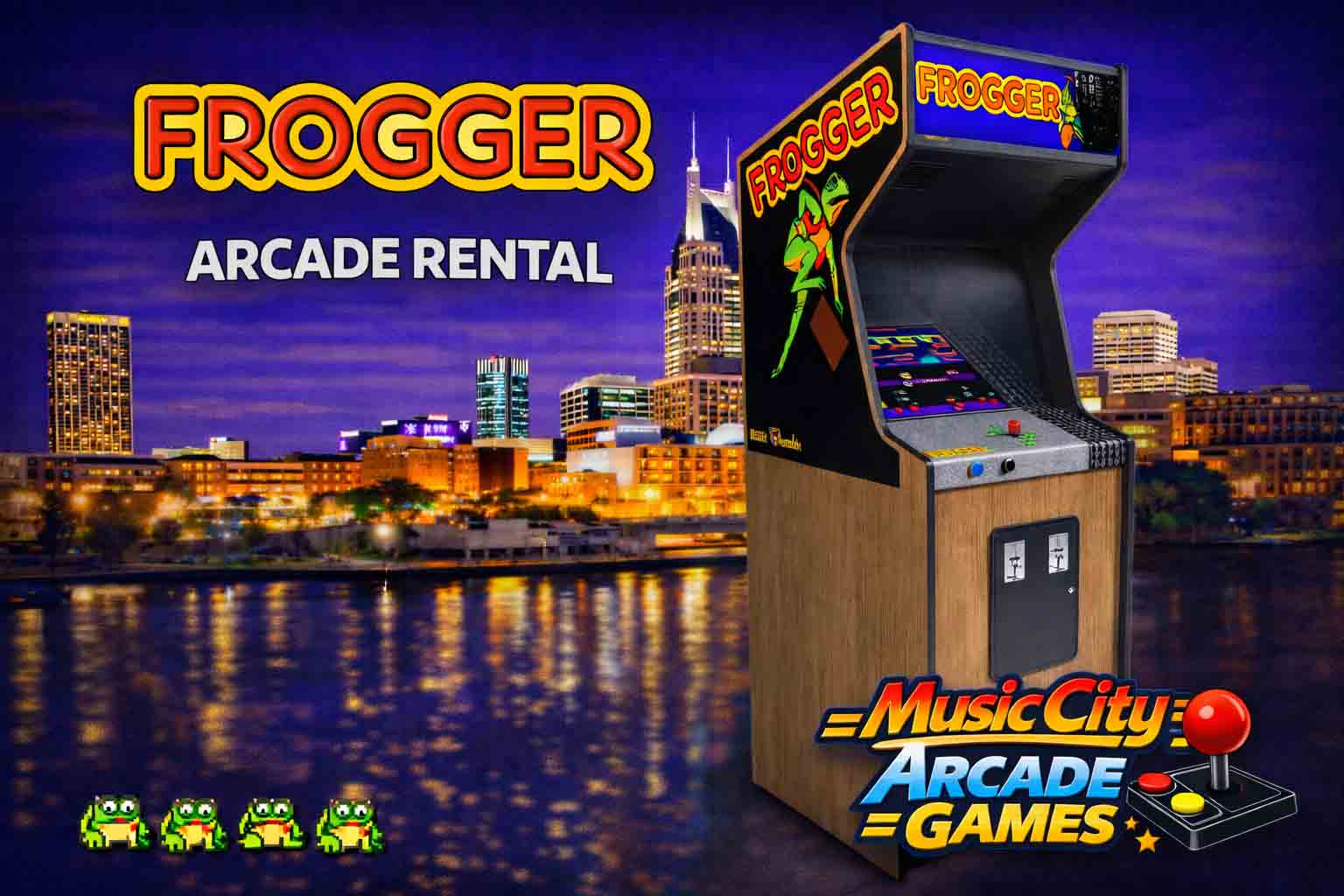 Frogger arcade game rental Nashville from Music City Mini Golf delivers classic road-crossing action for corporate events and parties, creating nostalgic gameplay moments and engaging retro entertainment guests instantly recognize.