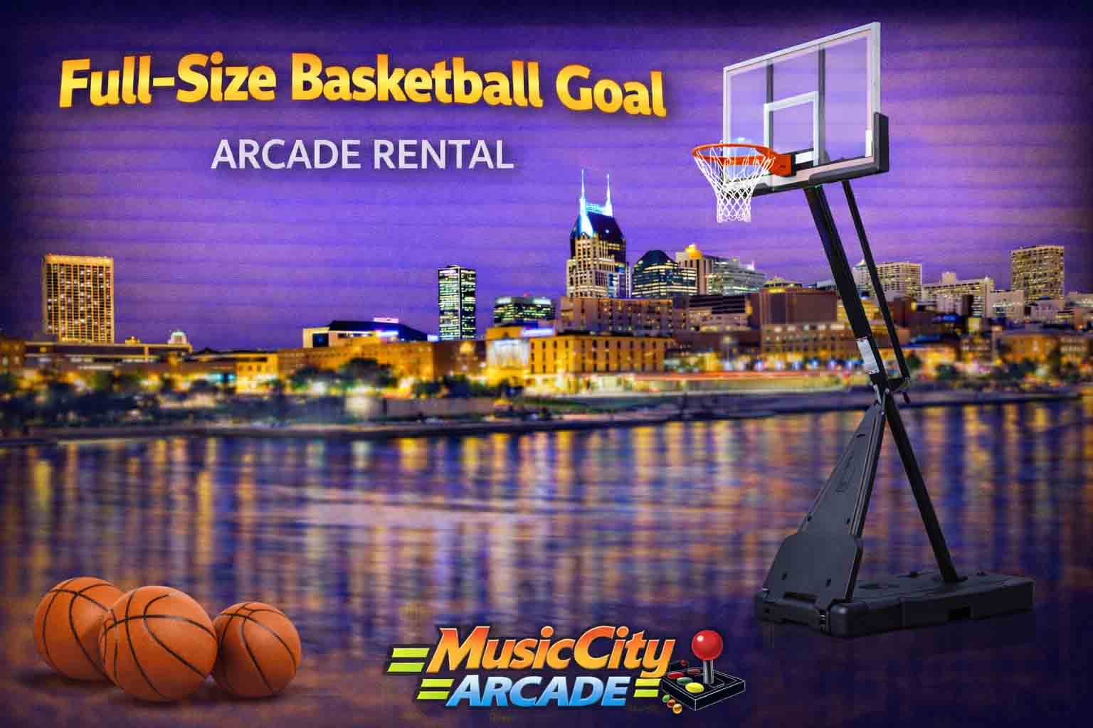 Full-size basketball goal arcade game rental Nashville from Music City Mini Golf delivers realistic open-play shooting fun, encouraging guest participation, crowd engagement, and interactive entertainment at events.