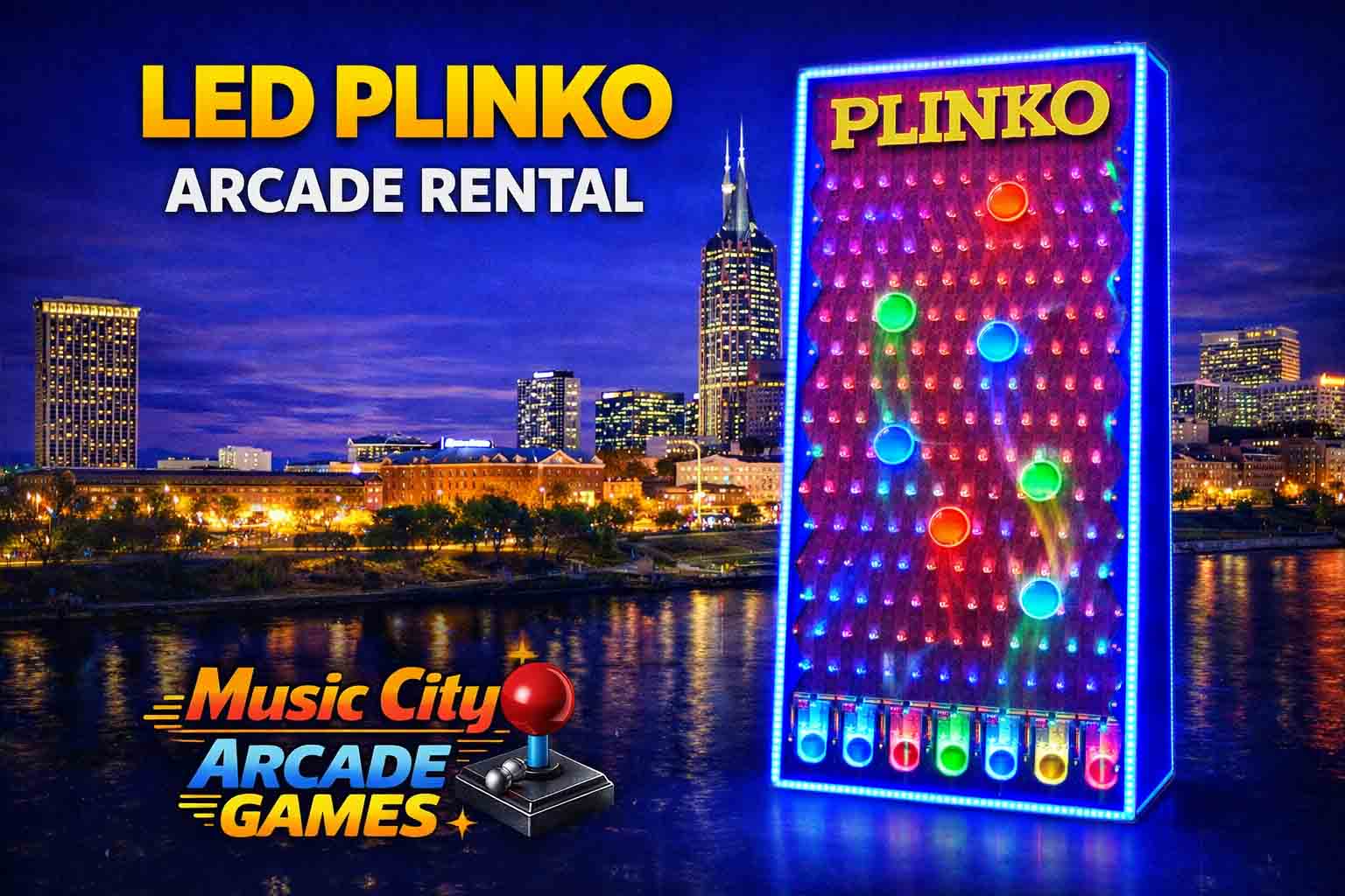 LED Plinko arcade game rental Nashville from Music City Mini Golf combines glowing visuals with classic drop-and-win gameplay, delivering interactive entertainment for corporate events, promotions, and brand activations.