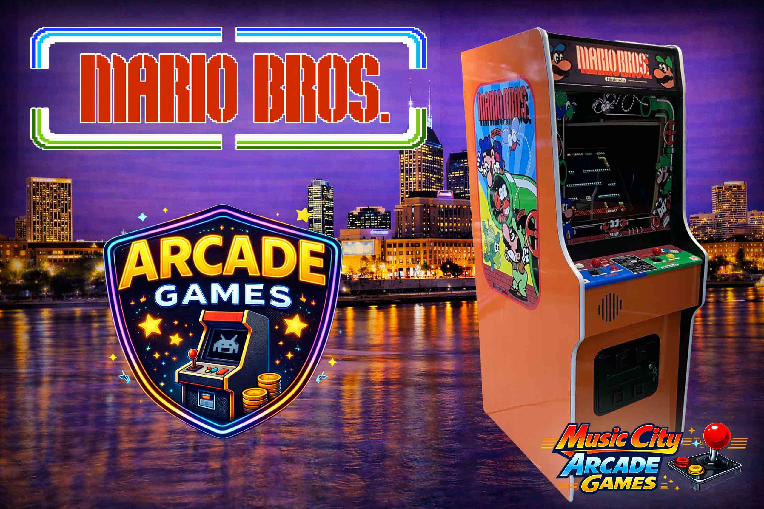 Mario Brothers arcade game rental Nashville from Music City Mini Golf brings classic platform gameplay, cooperative fun, and instantly recognizable characters to corporate events and family-friendly celebrations.