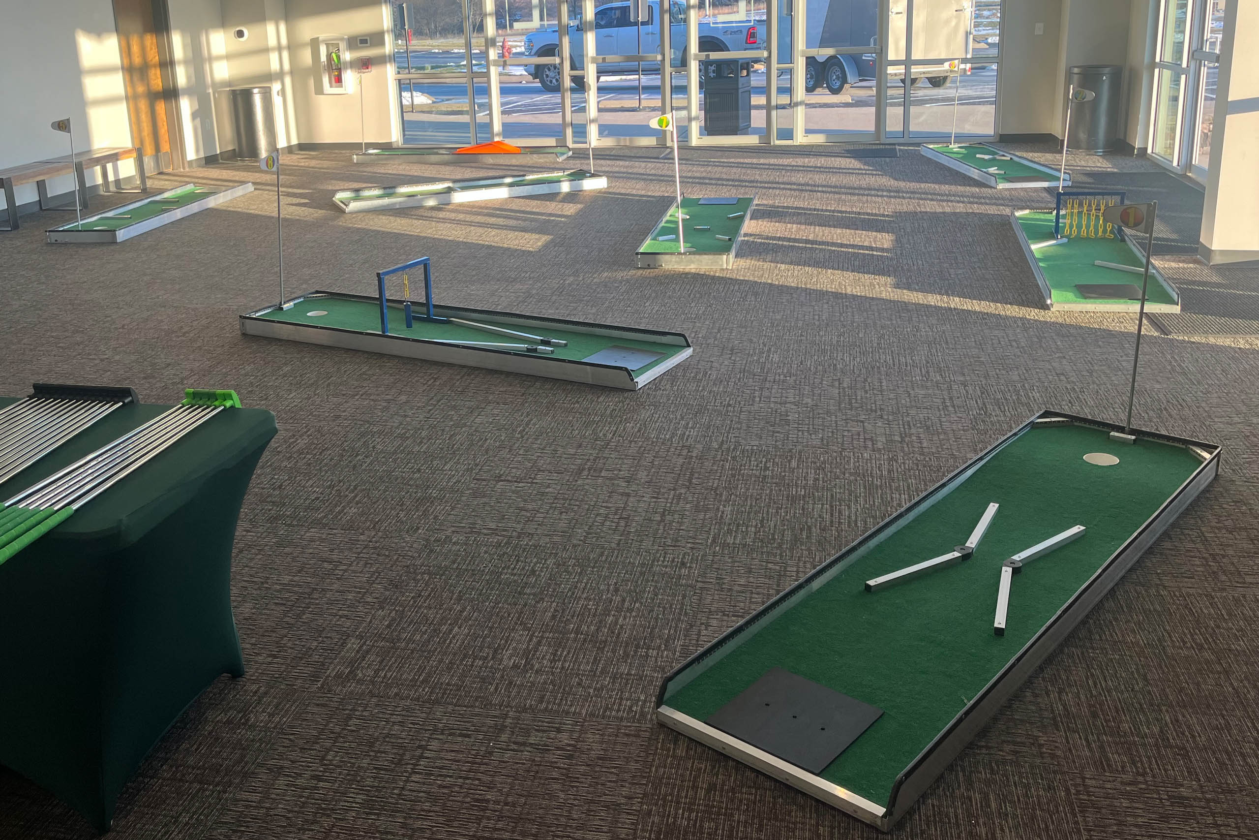 Mini golf arcade game rental Nashville from Music City Mini Golf delivers portable putting courses for corporate events and celebrations, promoting friendly competition, social engagement, and versatile entertainment suitable for all venues.