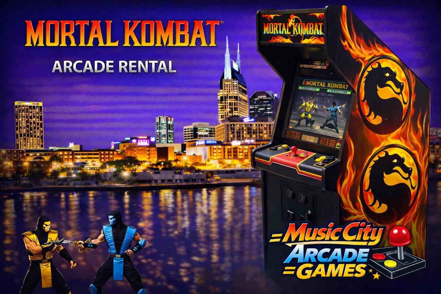 Mortal Kombat arcade game rental Nashville from Music City Mini Golf delivers iconic fighting gameplay, competitive head-to-head action, and high-impact arcade excitement for corporate events and gaming activations.