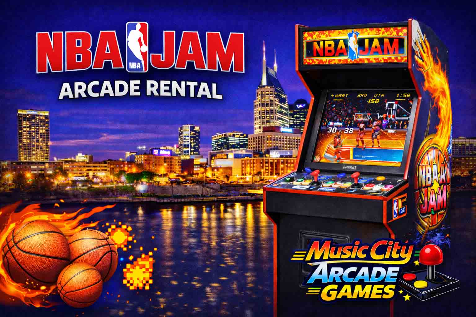 NBA Jam arcade game rental Nashville from Music City Mini Golf brings legendary two-on-two basketball action to events, combining nostalgic gameplay, competitive excitement, and interactive entertainment guests instantly recognize.