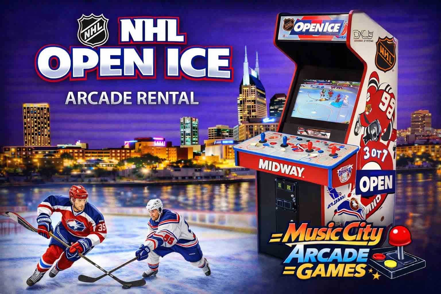 NHL Open Ice arcade game rental Nashville from Music City Mini Golf delivers classic hockey arcade action, competitive scoring, and authentic sports entertainment ideal for corporate events and fan experiences.