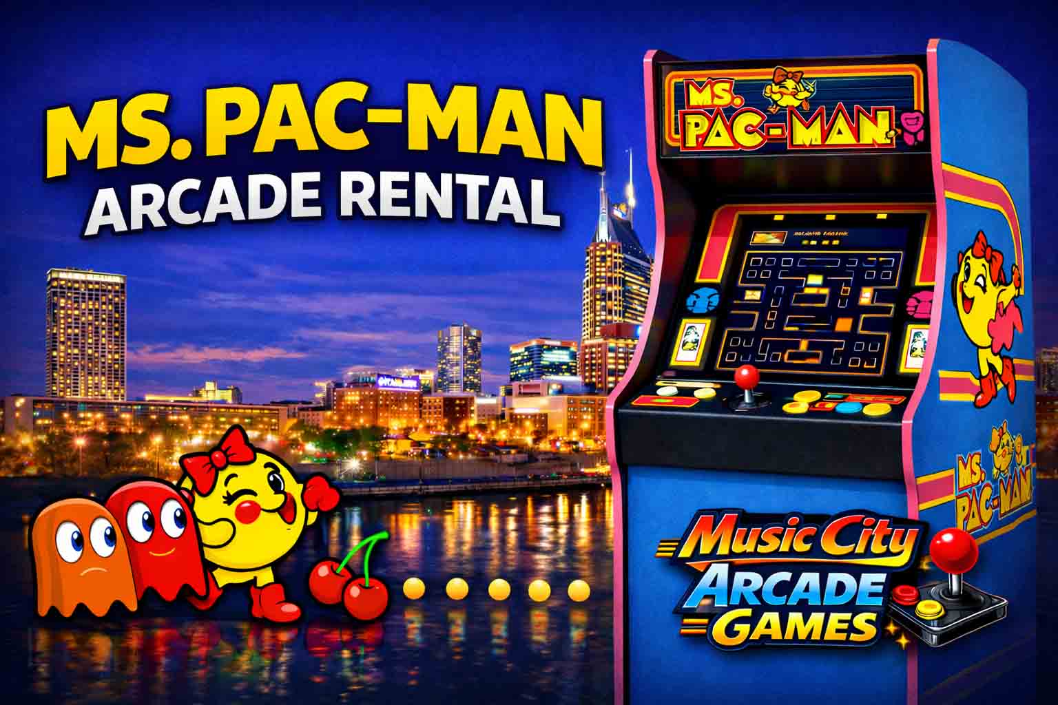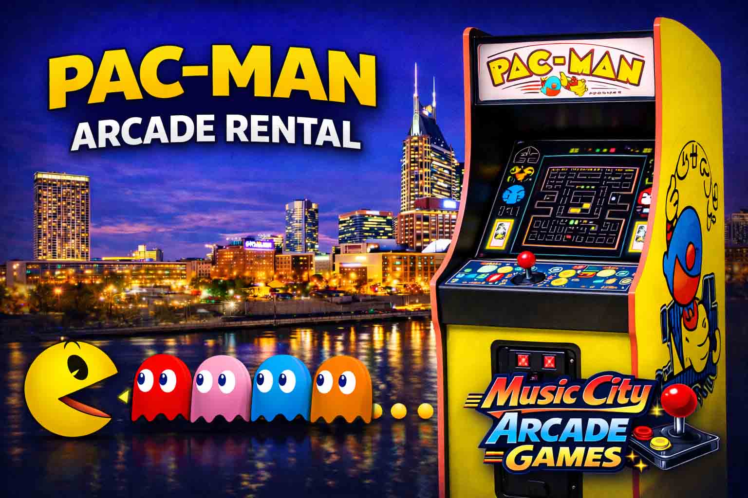 Pac Man arcade game rental Nashville from Music City Mini Golf delivers iconic maze-chasing fun, fast gameplay, and nostalgic entertainment that boosts guest engagement at corporate events, parties, festivals nationwide.